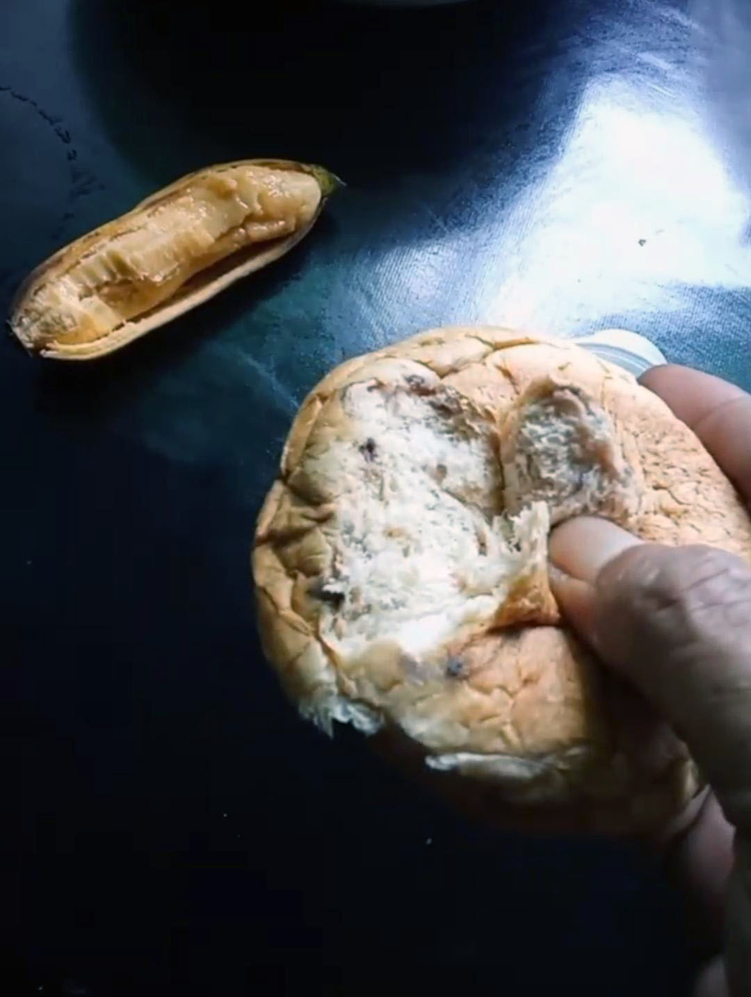 Terjadi perubahan warna pada permukaan roti.
