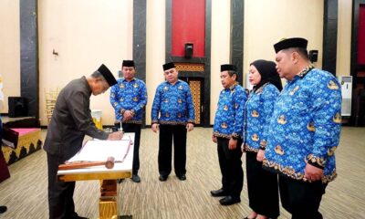 Kota Gorontalo – Sekretaris Daerah (Sekda) Kota Gorontalo, Dr. H. Ismail Madjid, M.M., mewakili Wali Kota Gorontalo, Dr. H. Adhan Dambea, M.Pd., melantik dan mengambil sumpah/janji pejabat administrator dan pejabat pengawas di lingkungan Dinas Pangan Kota Gorontalo, Kamis (29/12/2025), di Banthayo Lo Yiladia.